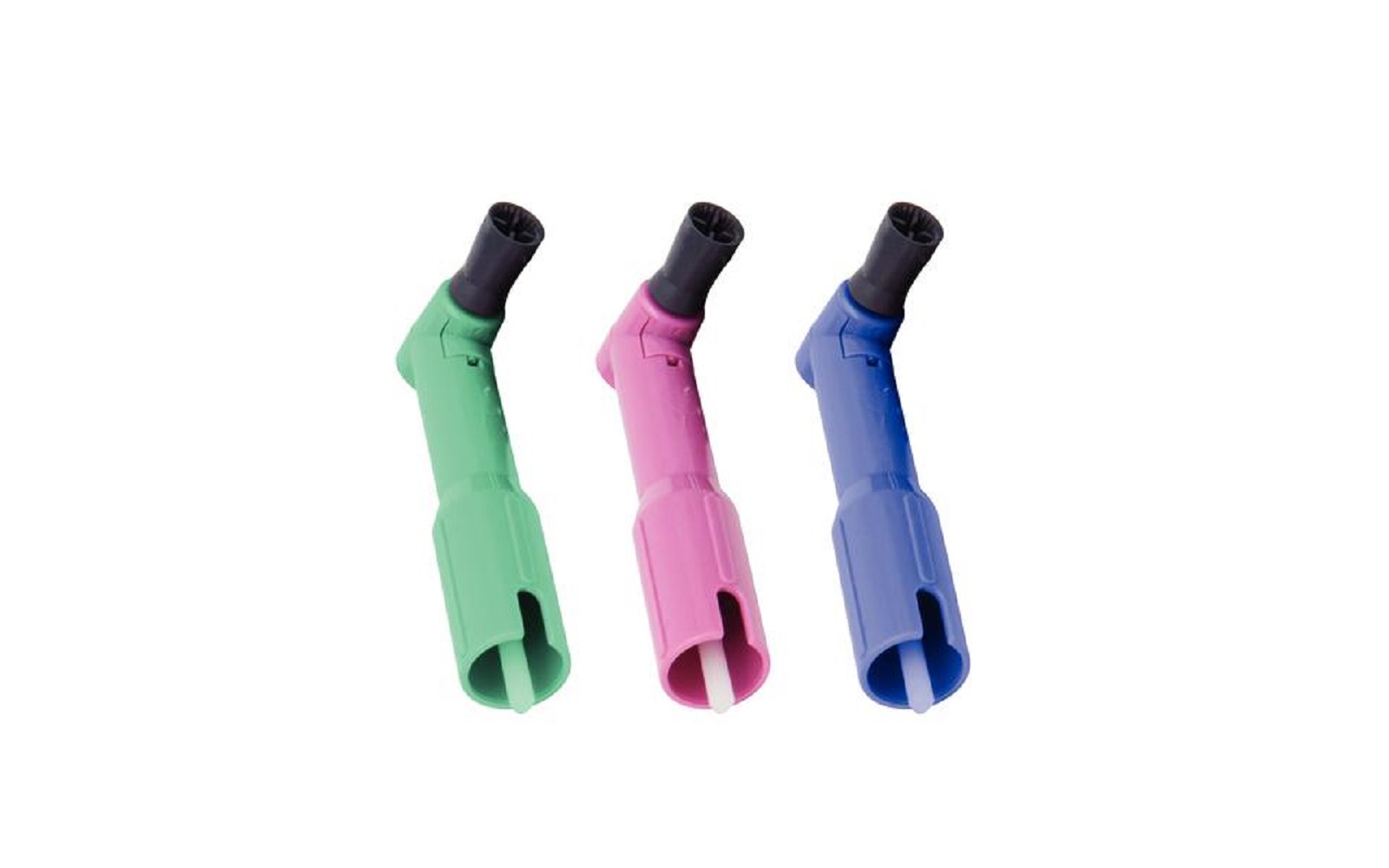 Available in teal, purple, or pink, PerfectPearl™ Midnight angles feature a grip pad for enhanced handling and are offered with either a soft or standard cup. The cup is designed to reduce splatter while providing superior flare and interproximal access. These angles are 100% latex-free, making them safe for all patients.