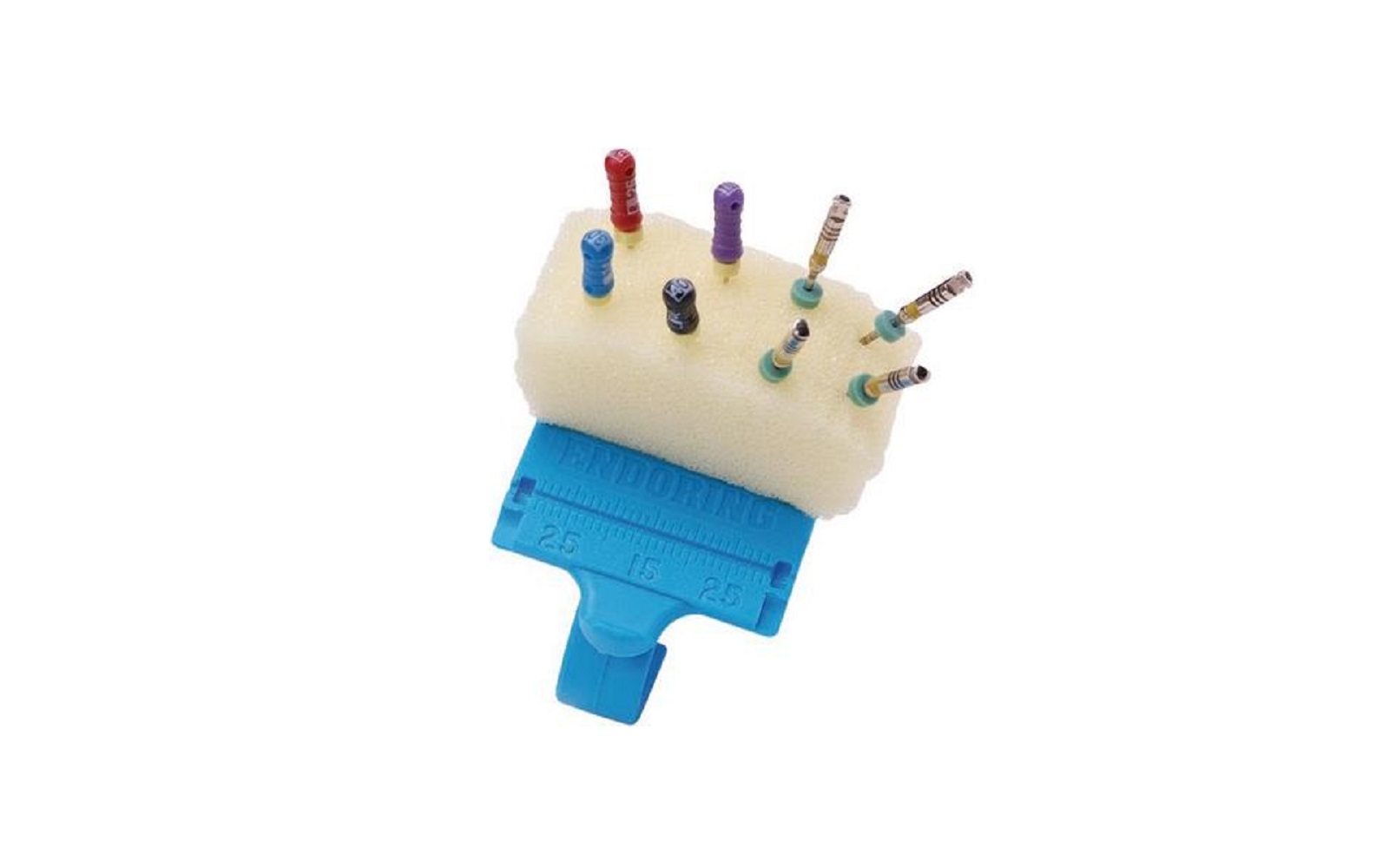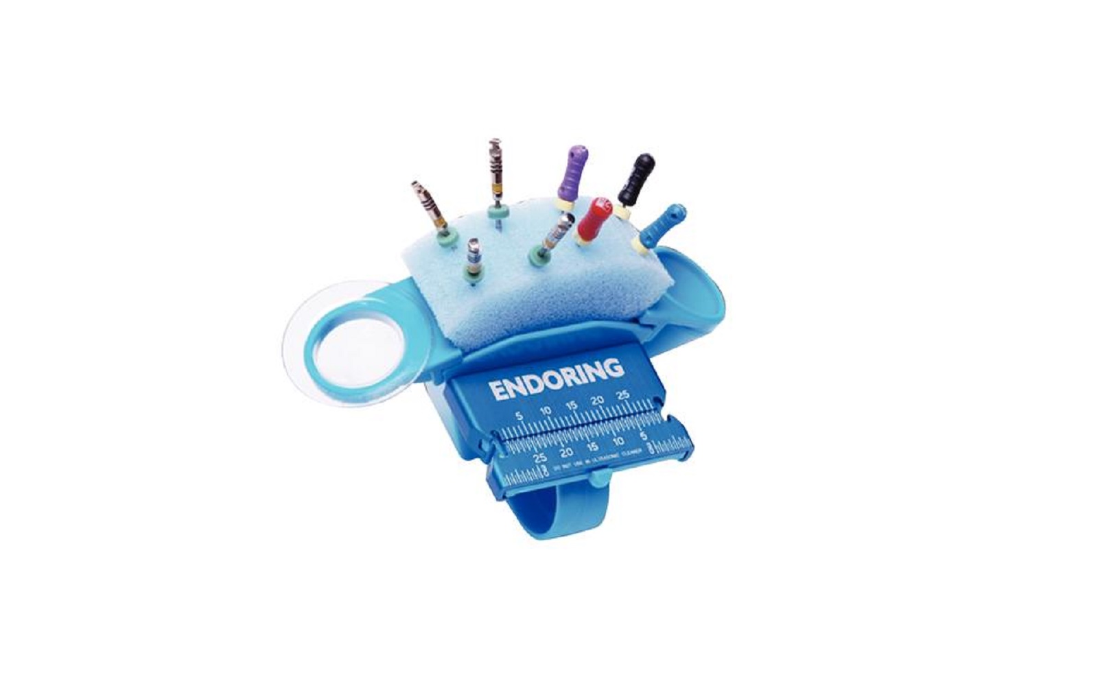 This organizer integrates file staging, measurement, and debridement in one compact system worn on the finger for convenient access. By eliminating unnecessary instrument handling between team members, the Endoring II® enhances procedural safety and reduces chairside time. It is compatible with autoclavable foam inserts (sold separately) for optimal hygiene.